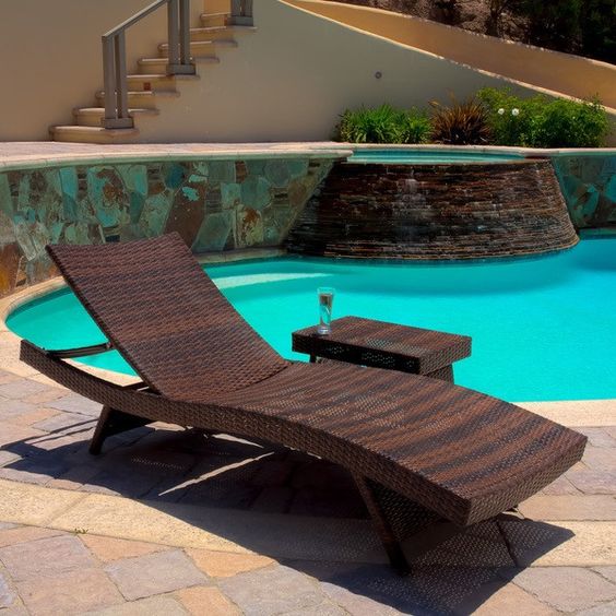 Tentunya tidak sembarang furnitur dapat ditempatkan di luar ruang seperti area kolam renang. Pilihlah furnitur seperti kursi kayu minimalis yang tahan basah dan dapat bertahan terhadap perubahan cuaca. Yang Anda butuhkan adalah kursi kayu minimalis dengan sandaran landai agar Anda leluasa berbaring dengan santai. Tambahkan payung besar di sekitar kursi kayu minimalis Anda untuk menaungi dari panas matahari.