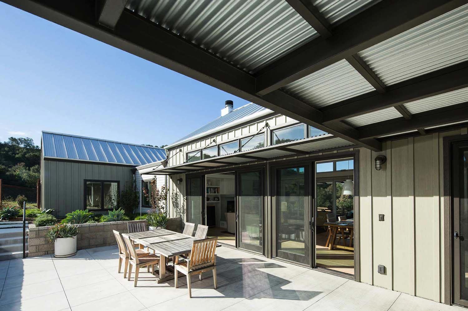 Makan bersama keluarga di halaman samping atau belakang rumah pasti akan memberi momen lebih berkesan dan seru daripada sekadar makan di ruang dalam rumah. Supaya tidak kehujanan atau kepanasan, kamu bisa membuat kanopi rumah minimalis dengan material baja dan fiberglass. Material fiberglass yang menjadi pelindung atas akan membuat suasana tempat makan di luar ruangan tersebut lebih cerah karena tidak ada sinar yang tertutup atap kanopi.