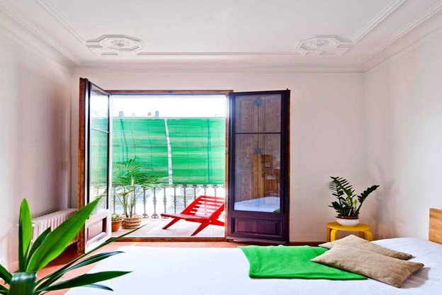 Terdapat dua kamar tidur pada desain interior apartemen ini. Kedua kamar tidur tersebut memiliki pintu yang menghubungkannya dengan teras mungil. Pintu tersebut terdiri dari dua lapisan, yaitu pintu kaca dan pintu kayu yang memberikan keleluasaan kepada pemilik hunian dalam mengatur masuknya cahaya matahari dan juga mengatur privasi. Seperti halnya pada ruangan lain, kamar tidur juga memiliki sentuhan warna dengan berbagai cara, seperti furnitur berwarna cerah serta penambahan pot tanaman hijau di sudut kamar.