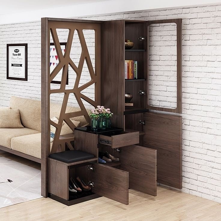 Tak hanya sebatas pemisah dan dekorasi, beberapa jenis dan bentuk partisi ruangan juga bisa berfungsi sebagai tempat penyimpanan atau storage dekoratif. Tidak perlu membangun tembok, dengan partisi ruangan non-permanen, Anda dapat membagi ruang menjadi terlihat lebih unik, estetik dan terutama lebih fungsional.