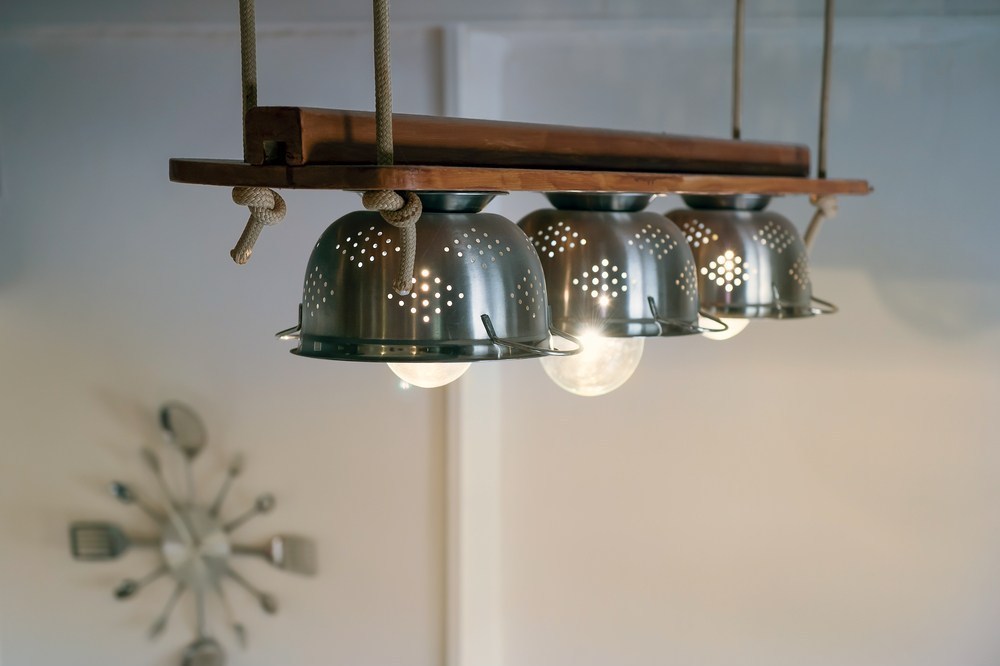 Tidak hanya berguna di dapur dan ruang makan, wadah nasi bisa juga dijadikan frame lampu, lho! Kamu bisa mengombinasikan tiga wadah nasi besi ini dengan lampu gantung dan menjadi sebuah furniture unik. Gantungkan lampu gantung ini di area yang membutuhkan cahaya tambahan, seperti di atas meja makan, dapur, dan ruang kerja. Pilihlah bohlam lampu berwarna kuning agar memberi kesan hangat dan tenang.