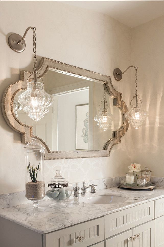 Pemasangan cermin dalam kamar mandi akan memberikan kesan lapang dan luas. Hal ini sangat berguna terutama untuk kamar mandi berukuran kecil. Untuk memberikan kesan cantik yang diinginkan, gunakan cermin dengan gaya, model, atau bentuk yang berbeda. Sebagai contoh, Anda bisa menggunakan cermin dengan gaya vintage. Pilihan lain adalah dengan menambahkan frame unik dengan menggunakan stiker frame ataupun bahan lainnya.